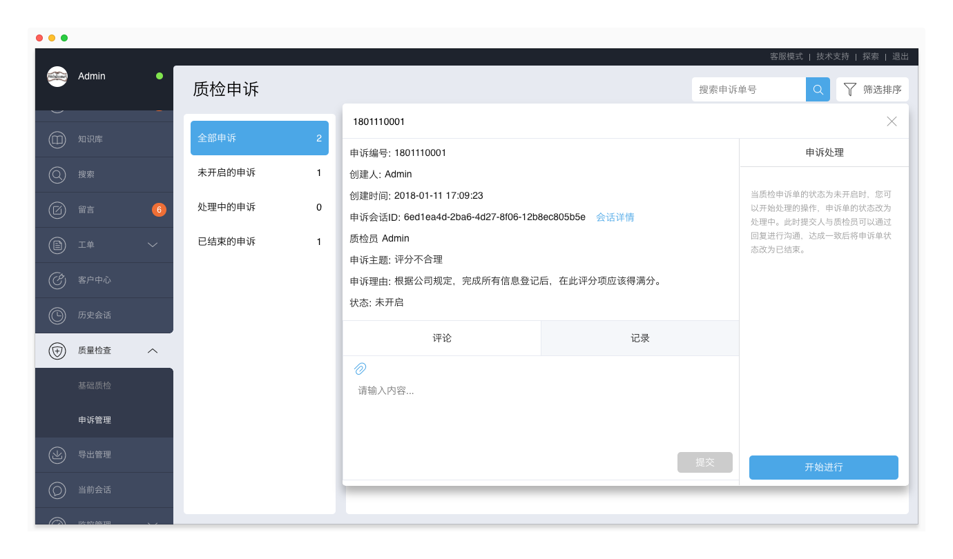1.   未开启:客服发起会话的质检申诉后,默认为“未开启”状态。