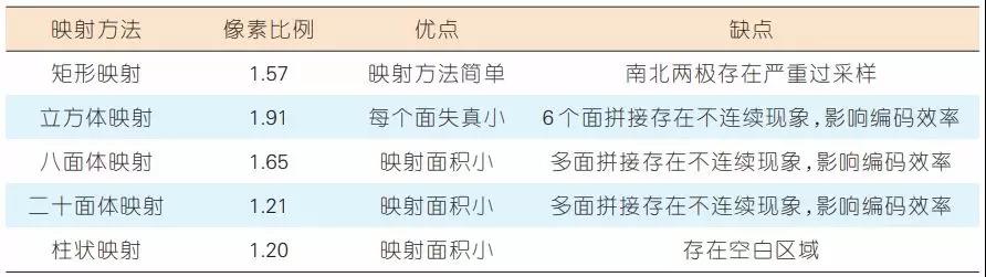而映射过程与传输又紧密相关:为便于存储和压缩编码,摄录的全景球面视频内容需被几何映射到平面,映射过程影响了 VR 视频编码前的像素量,在一定程度上也决定了视频内容所包含的信息量。