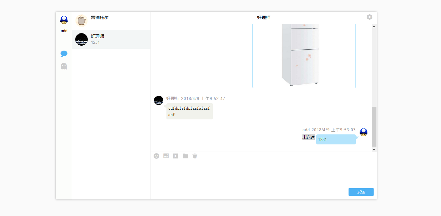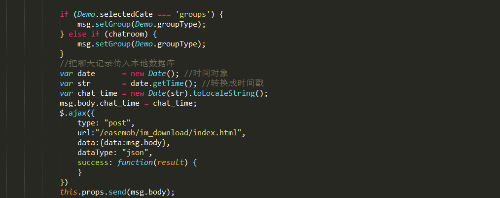 这三步完成基本就完成了IM整合进项目了,还有一个保存聊天记录到本地,我没有用官方的接口来下载历史记录,听说下载下来是一个包,而且数据还会有丢失,所以我的做法是每次发送消息调用自己的Ajax来进行保存数据库操作,然后新在打开聊天的时候请求后台获得聊天记录。
