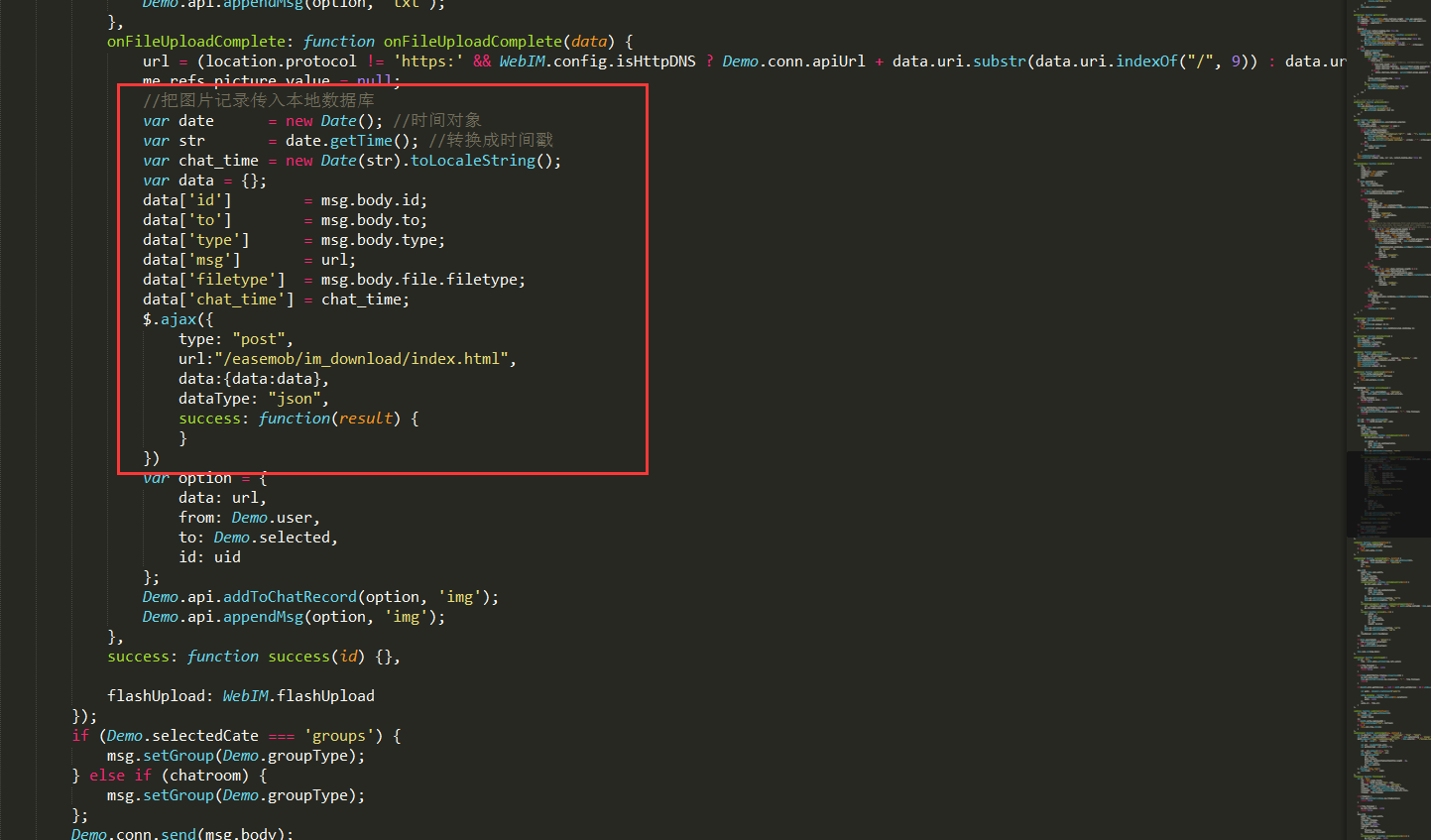 pictureChange(22977)这个方法是发送图片的,这里的url非常重要,而且在msg.set在外面拿不到所以我放在了方法里面调用的Ajax,这个url 是