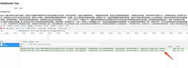 我们还可以看到浏览器控制台中 Frame 栏中显示的客户端发送和服务端响应的文本数据,你一定惊讶 WebSocket 通信强大的数据传输能力。