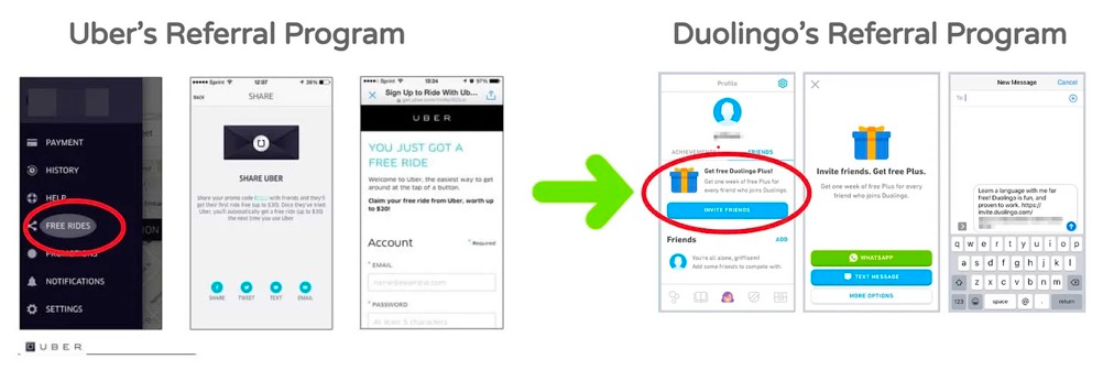 「Uber」和「Duolingo」的推荐计划界面展示|图片来源:Lenny’s Newsletter