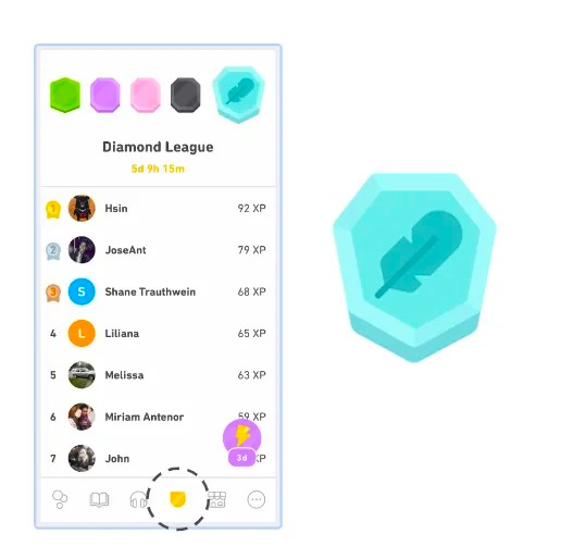 「Duolingo」联赛排行榜界面展示|图片来源:「多邻国」