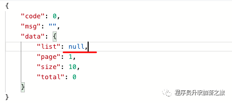 return}1.2.3.4.5.6.7.8.9.10.11.12.13.14.15.16.17.18.19.20.21.22.23.24.25.26.优化代码之后,无数据的list返回格式和预期一样为[]: