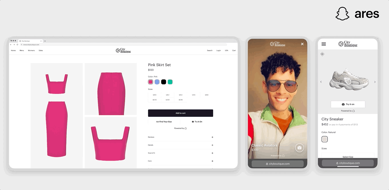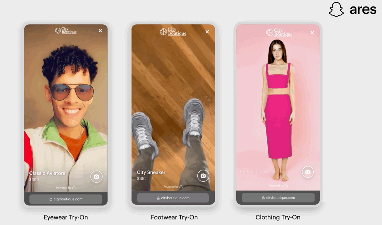 ARES 不仅得益于 Snap AR 技术,同时还整合了过去两年所收购的 Vertebrae、Fit Analytics、Forma 等公司的前沿技术。