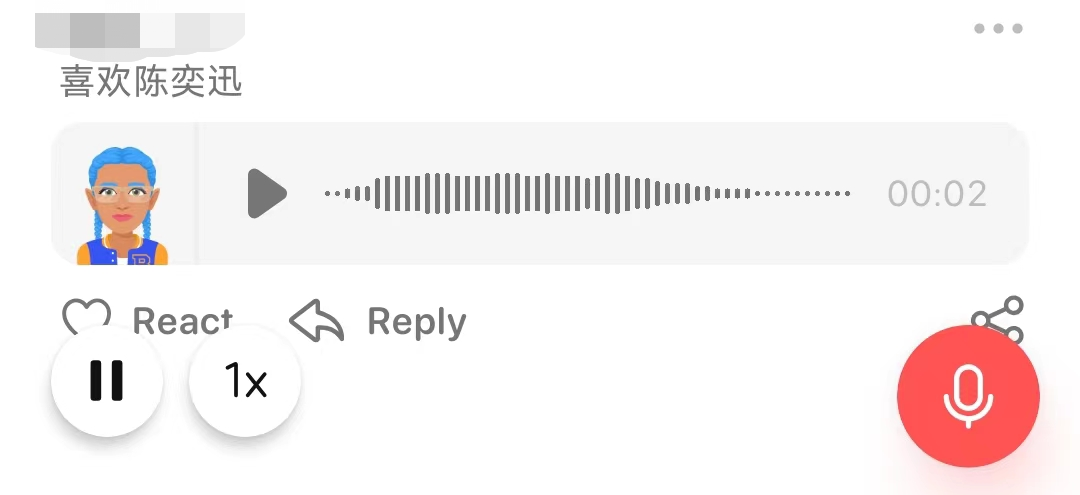 Stereo设计的语音卡片不仅能承载更多信息含量,同时也能成为用户互动的展示空间。当其他用户留下评论时,Ta的虚拟形象将出现在卡片的左下角,以直观展示贴子的互动情况。在评论区,用户们的留言同样以语音条的形式展示,Stereo还贴心地给出了评论对应的文字内容,方便用户查看。