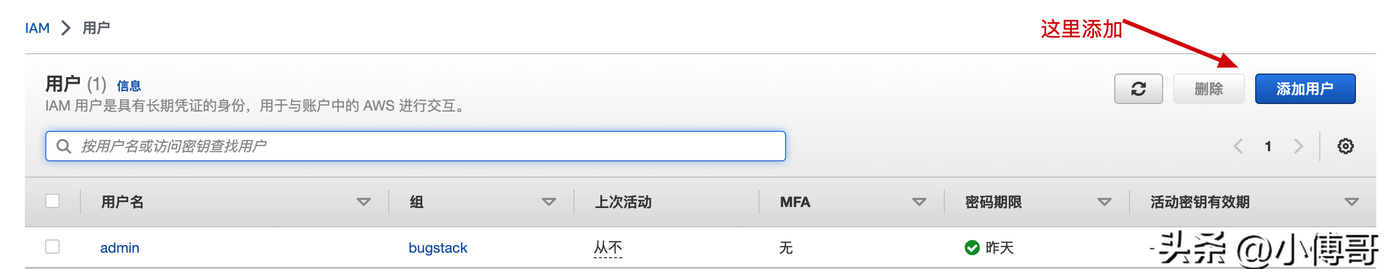 地址:https://us-east-1.console.aws.amazon.com/iamv2/home?reginotallow=us-east-2#/users