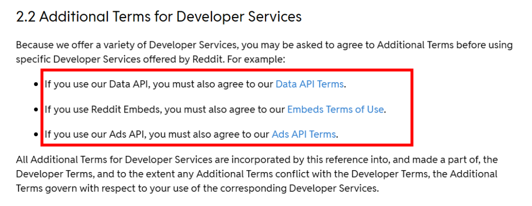 为此,该公司宣布正在更新其各种开发工具和服务的使用条款,并将它们全部整合到一套开发人员条款中,包括其数据和广告API、嵌入条款等。据称这些条款将管理Reddit的所有开发人员服务。Reddit解释,这些是为了帮助开发人员通过允许访问Reddit上托管的帖子和其他信息来为Reddit用户构建应用程序和服务。