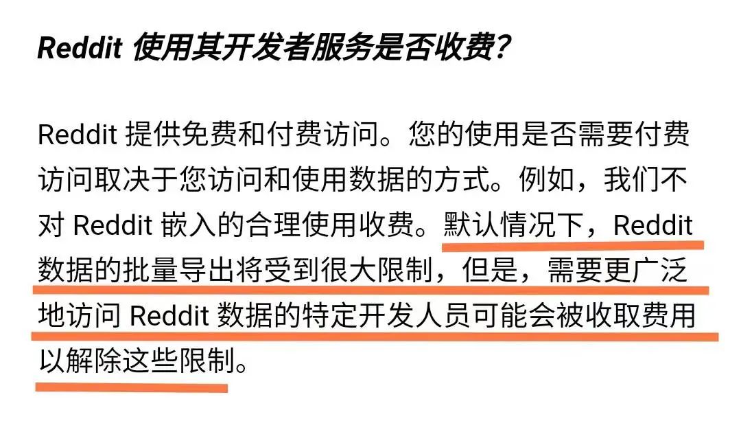 Reddit表示,新规则不出意外的话将于6月19日生效。截至目前,数据API仍然可以免费访问通过Reddit开发者平台的适当用例。