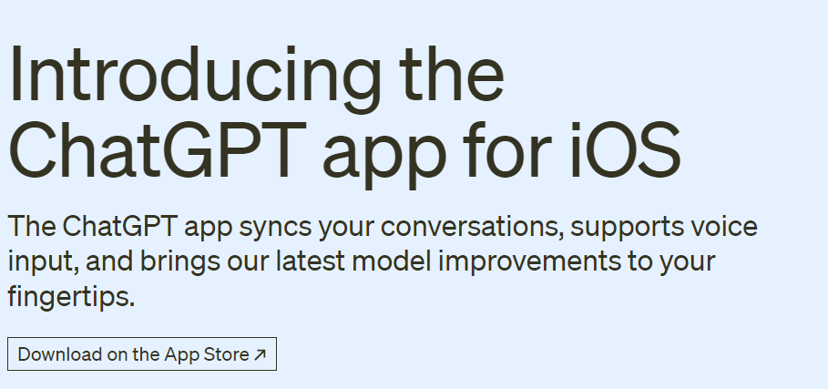 简介写道,“OpenAI的最新进展就在你的指尖上。这个官方应用程序是免费的(没有广告!),可以跨设备同步你的历史记录,并为你带来OpenAI最新的模型改进。”