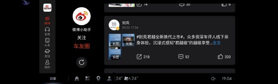 在新能源汽车崛起和5G网络高速发展的大背景下,汽车的娱乐系统也迎来了新的变革,从单一的听音乐、听广播进化为可以承载众多APP的智能座舱。新浪&微博HD锚定车载环境这一全新的应用场景,积极研发推出了车载APP。据悉,上汽通用汽车已在旗下别克品牌首款奥特能大五座智电SUV Electra E5中搭载微博车载客户端,用户可以在爱车中体验到这款车载APP。