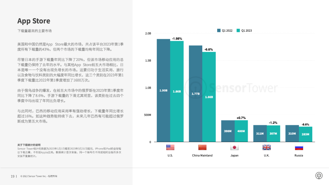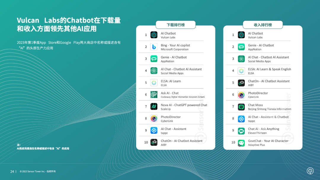 原标题:2023年第1季度 Sensor Tower 商店情报数据纵览: 全球应用总下载量超过350亿次,AI应用崛起