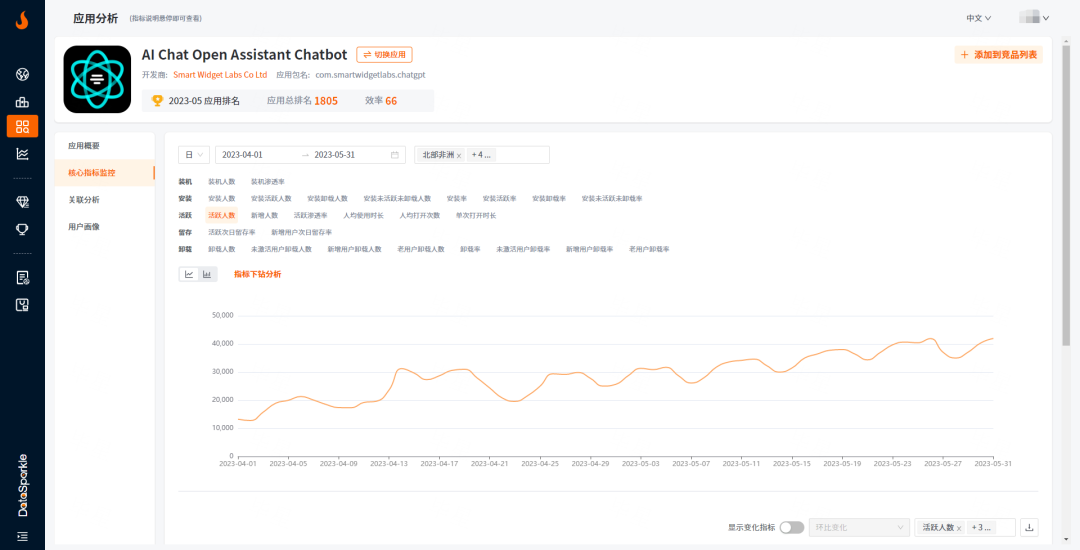 图:DataSparkle -应用分析-核心指标监测-活跃人数