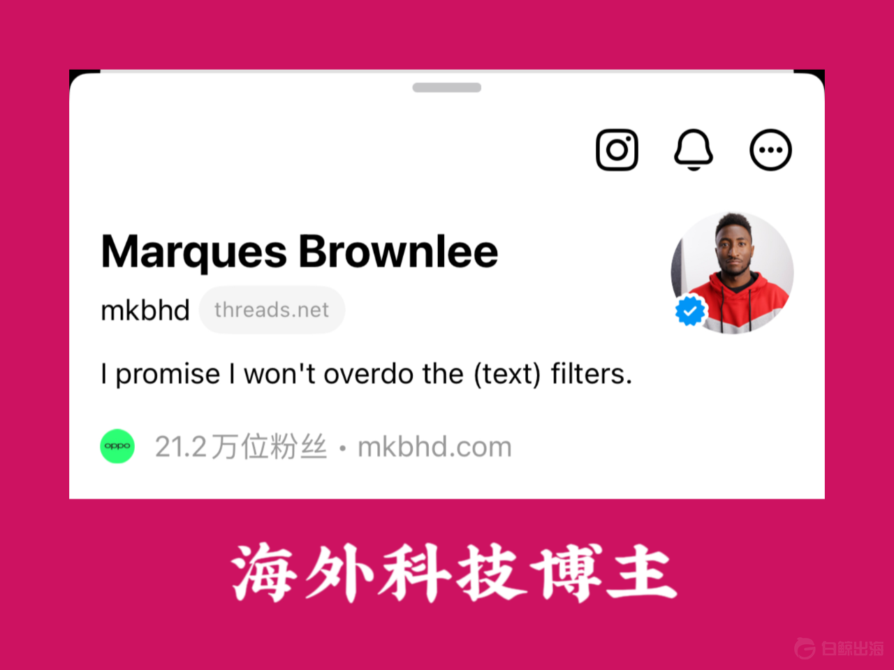 我们期待看到一个月后的 Threads,另外也劝各位出海品牌们真的注册一个账户,笔者朋友圈不少主理人都发文表示自己的品牌账户在短短几小时内积累了大几千粉丝,白给的流量一定要拿啊!