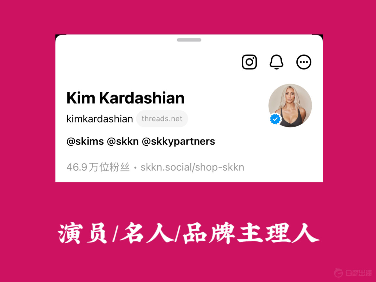 Kim Kardashian,在未发布任何内容的情况下已经在 Threads 上收获了 46.9 万粉丝,并且偷偷关注了 43 位用户。