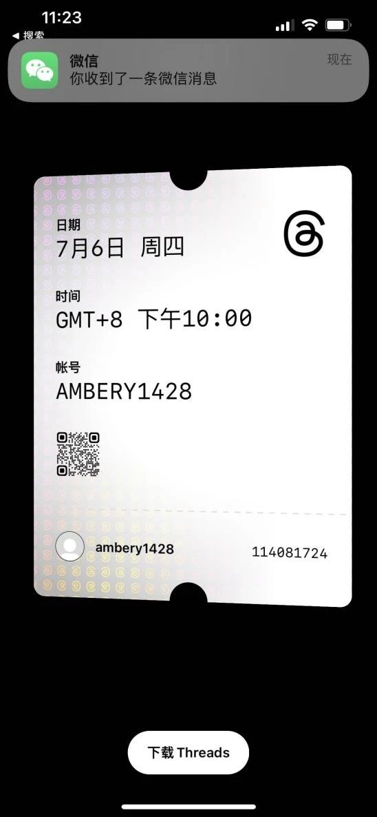 从上面的入口可以获得类似于“船票”的卡片,点击下载 Threads 跳转 App Store