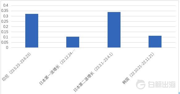 其实可以看到,在这一波快速起量中,WePlay 从下载量到转化为 DAU 方面,表现得也很高效。笔者对比了印尼和日韩市场下载量出现明显增长后的一个月内新增 DAU/下载量数据。