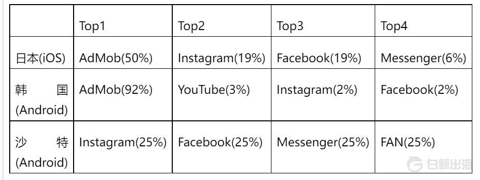 日韩,沙特市场广告渠道占比数据 | 来源:App Growing Global