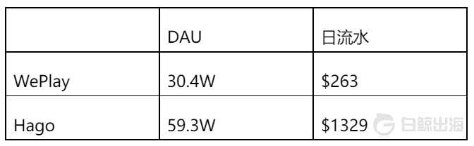 首先,WePlay 本身的变现进程不太好。目前,已经做到Hago快一半 DAU 的 WePlay,在印尼市场的日流水只有 Hago 日流水 1/5 左右。