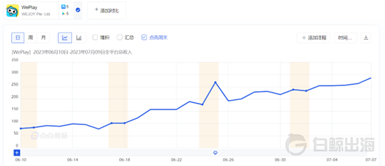 WePlay 印尼日收入数据 | 数据来源:点点数据