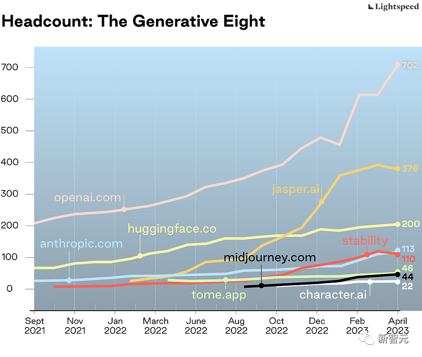 尽管人们总是过分担心人工智能会用机器人取代所有工作,但生成型人工智能初创企业对构建新功能和产品所需的专业技能组合的需求比以往任何时候都多,更不用说管理所有相关的技术了,比如运行拥有数千个GPU的数据中心、压缩数千字节的训练数据。