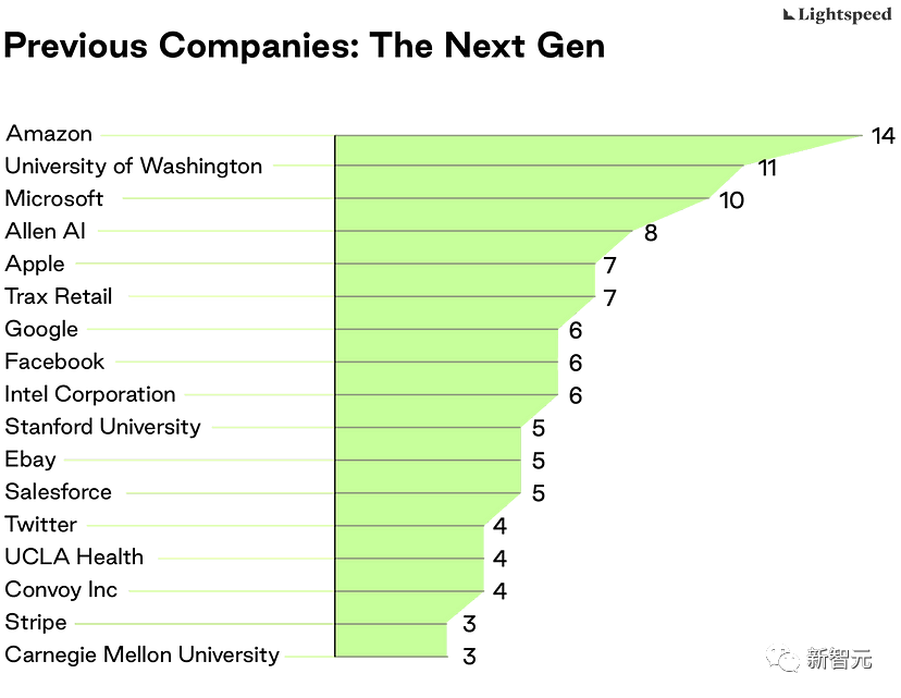 在调查受雇背景时,华盛顿大学再次出现,排名前列的还有亚马逊、微软和艾伦人工智能研究所(由已故微软联合创始人Paul Allen创办的研究机构)。