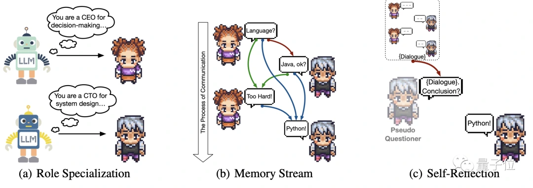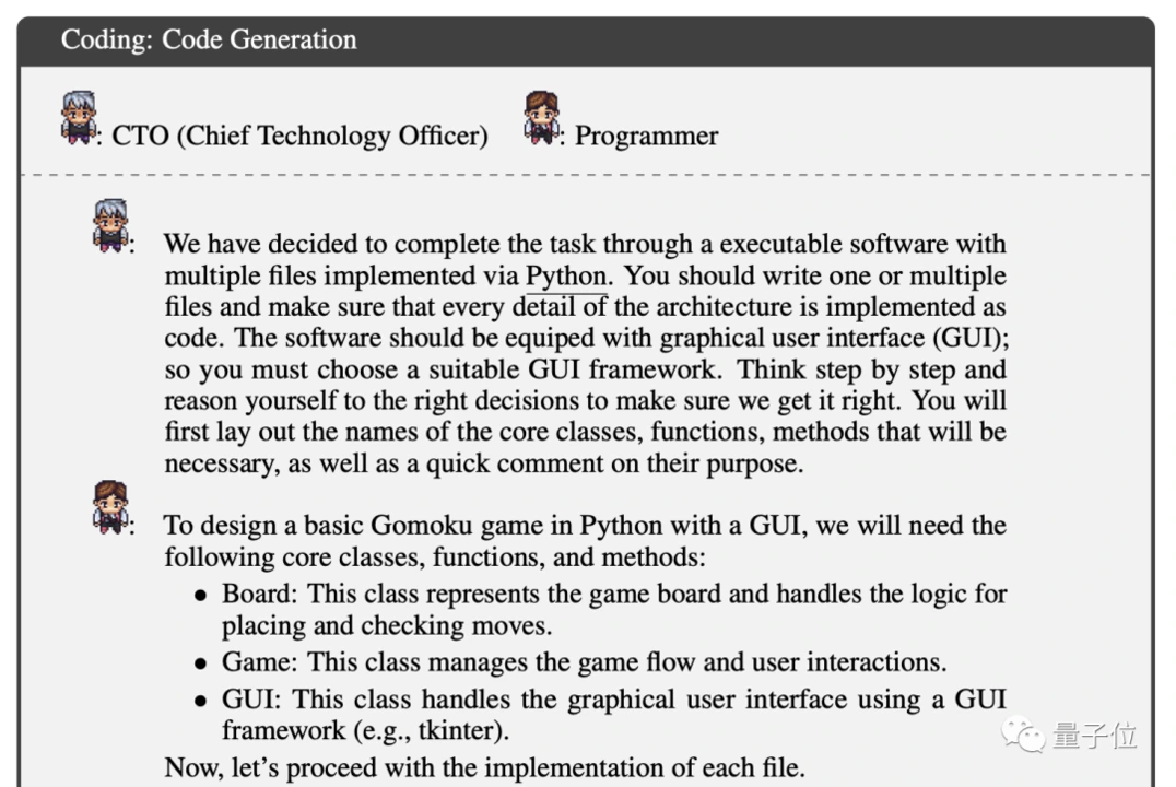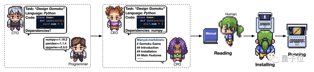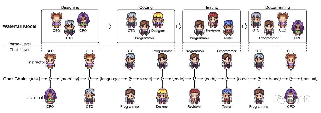 在「公司」中,十多个聊天机器人分别扮演着不同的角色,串联在一起完成开发工作。