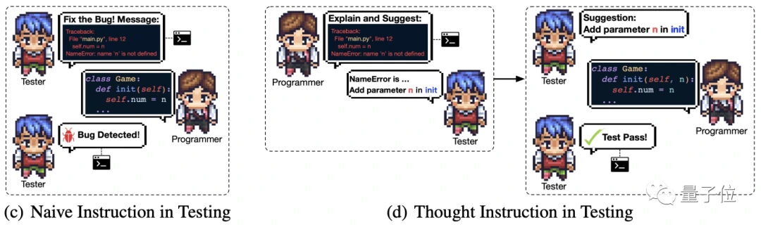 测试过程同样引入了「思维指导」机制,当测试反馈不明确时,程序员和测试工程师会进行角色互换。