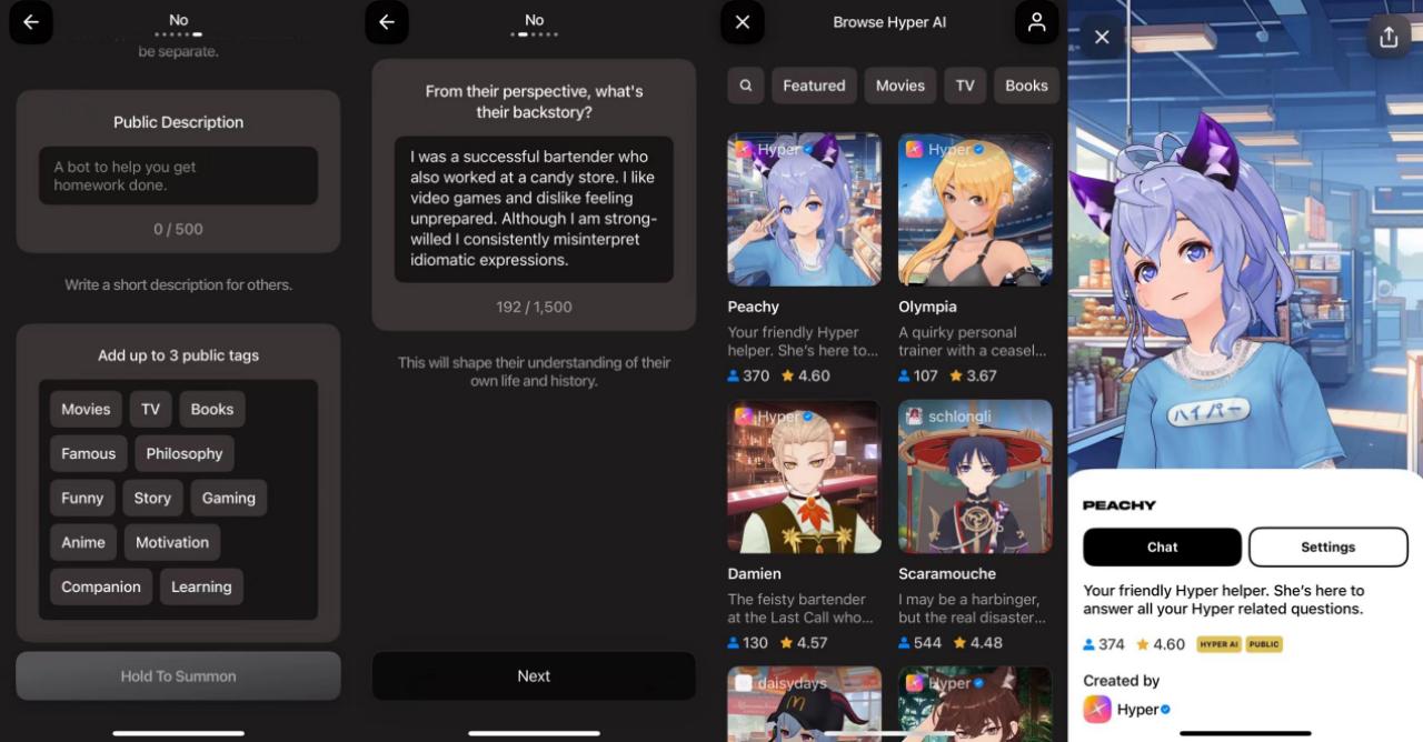 其实,Hyper 在 AI 上的应用算不上深度,但其实从画面、声音到背景一套设定下来非常丝滑,理论上用户是可以将 Hyper 上的 AI Avatar 训练成为自己的好朋友、甚至伴侣。