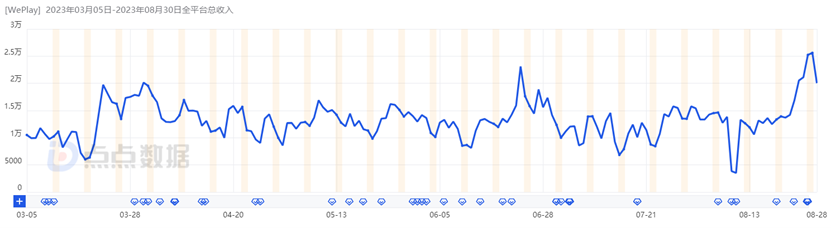 近 180 天 WePlay 美国市场双端收入数据|图片来源:点点数据