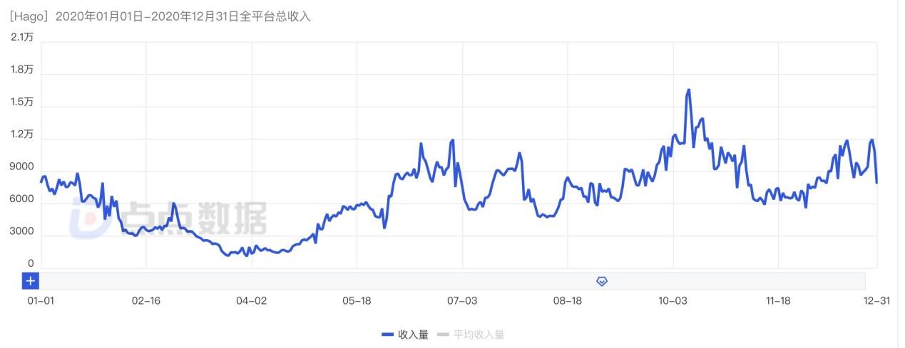 Hago 2020.1.1-2020.12.31 美国市场双端收入数据,注:只统计应用商店收入|图片来源:点点数据