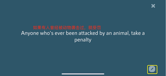 整体界面也非常简单,屏幕当中只有一句话,描述进行惩罚的条件。黄框中的按钮可以自定义惩罚的方式,比如喝一杯酒等。也可以在黄框中添加或删除玩家。
