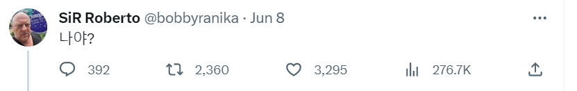 6 月 8 日,在预告 Maroo AI 功能的推文下,韩国男子组合 iKON 的说唱担当 Bobby 发了一条评论“나야?(是我吗)”。这条评论获得将近 30 万浏览量,也让帖子成了该账号浏览量和互动情况最好的一条。