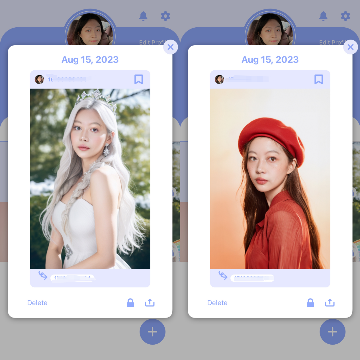 Maroo AI 的首页像一个社媒 App 的用户主页版块,展示用户粉丝数、关注者以及使用 App 制作的图片状态。点击页面右下角“+”加号,才会进入图片制作界面。