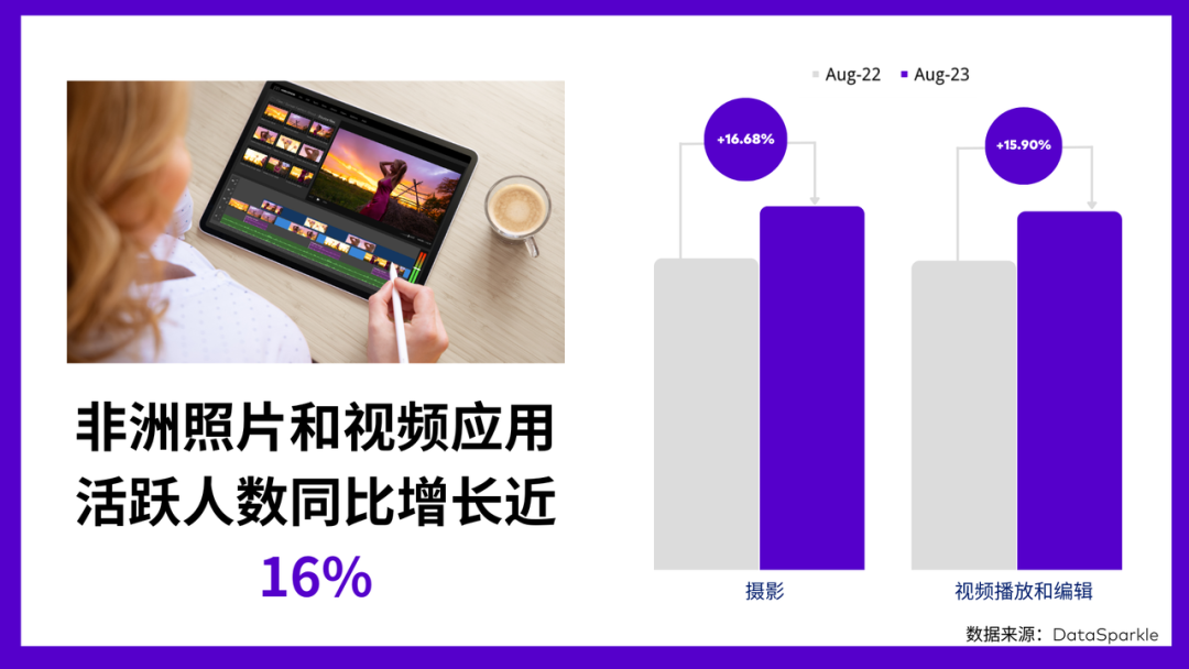 非洲照片和视频应用活跃用户规模同比增长近 16%