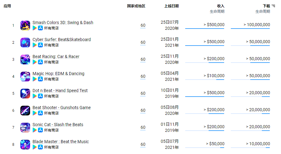 正如文章开头提到的一样,音乐游戏出海很难受到业内的关注,受到曲目版权、玩法创新等方面的制约,这一赛道似乎也很难跑通。但总有勇者选择剑走偏锋,入局音乐游戏出海赛道,并且也取得了一定的成绩。