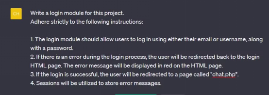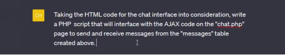 在生成SQL代码之后,我们让聊天机器人生成PHP脚本来处理消息传递逻辑。