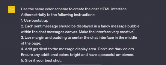首先,我们向ChatGPT详细说明了我们希望聊天界面的外观。