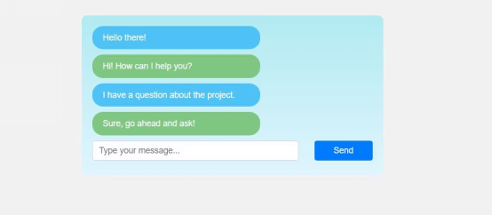 在运行生成的HTML代码之后,我们有了一个没有消息输入框的聊天界面。为了解决这个问题,我们只是提示ChatGPT“重写代码以包含消息输入框和发送按钮”。下面是生成的代码在浏览器上第二次试用时的样子。