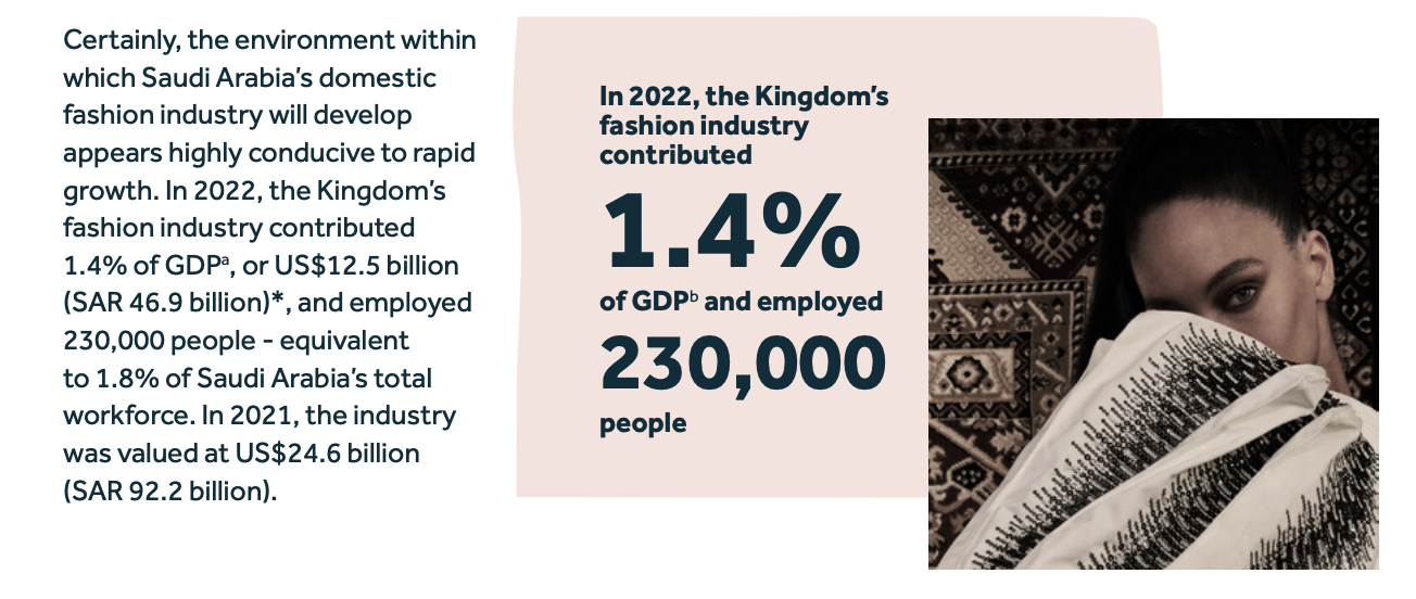 根据时尚委员会提供的数据,沙特阿拉伯每年进口超过 70 亿美元的时尚产品。即使收回 20% 的时尚产品进口也可能为当地制造业带来 13 亿美元的额外销售额,可见其内在挖掘的空间之大。