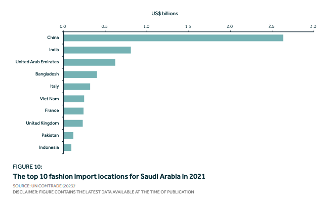 “减少对海外时装进口的依赖,开发本土时尚自有品牌,通过培育涵盖设计、制造、物流和零售在内的时装产业链,力求实现自给自足。”《沙特阿拉伯王国时尚状况(2023)》报告称,并预计到 2025 年,沙特时尚产品的零售需求将增长 48%,年增长率为 13%,达到 320 亿美元。