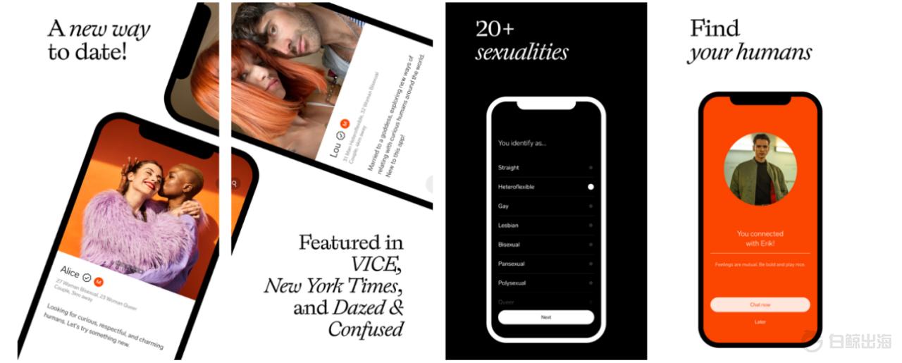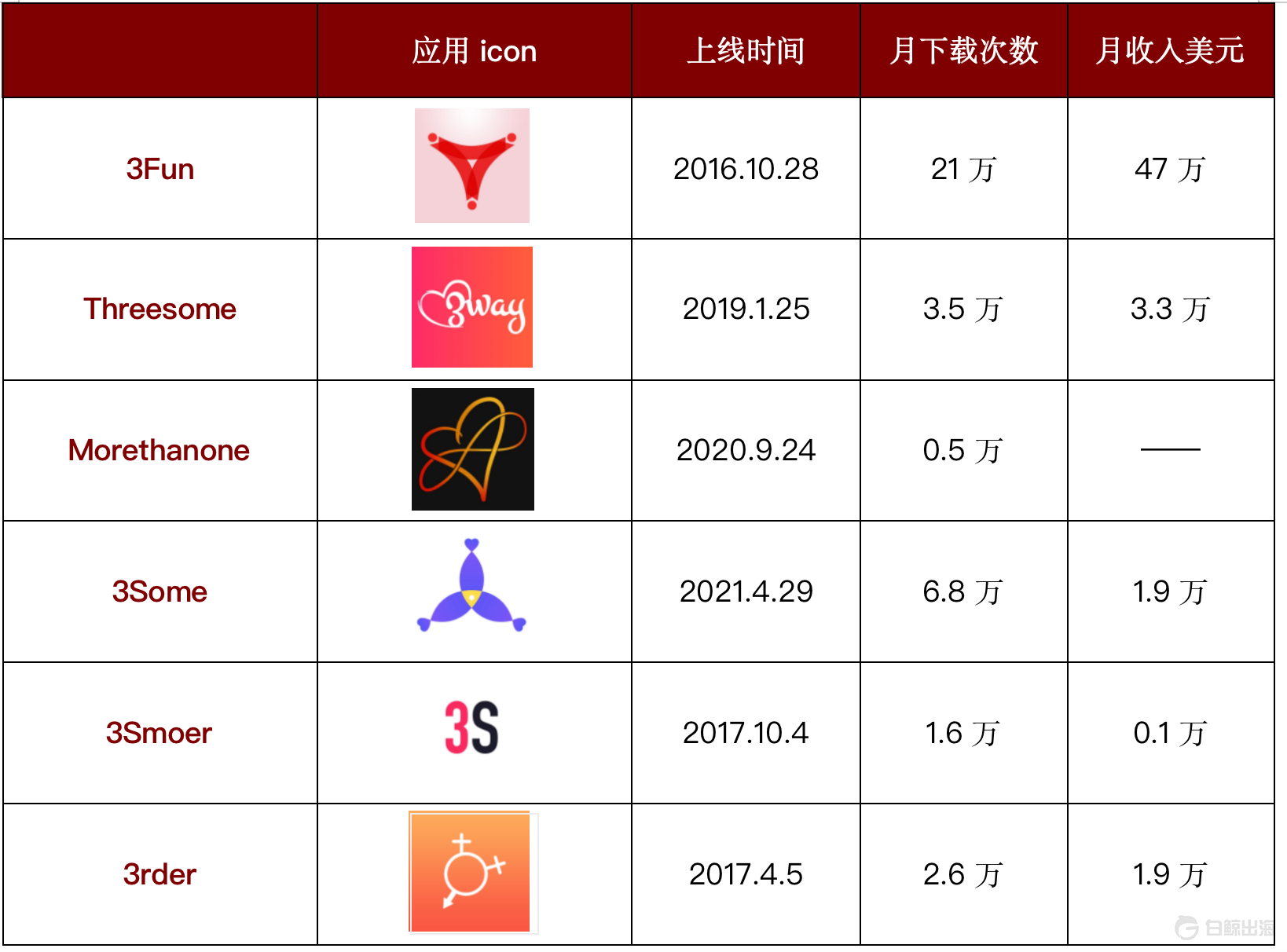 2、开放关系对用户资源有着非常严格的要求,很难通过常规买量或者社媒营销的方式获取,且目前多数用户已经被 Feeld 和 3FUN 两款产品霸占,因此布局该赛道的出海企业数量并不多。