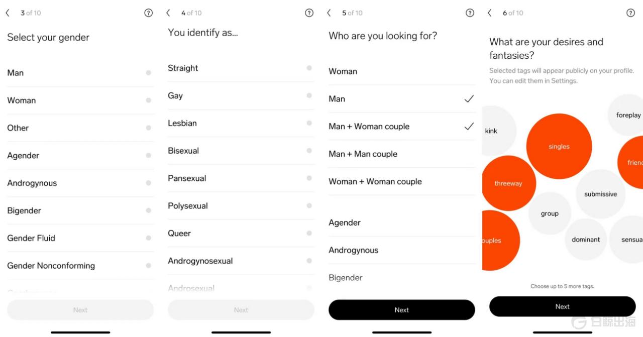 根据笔者对 Feeld 产品的研究以及对用户资料的观察,发现与 Tinder 等其他普通约会交友应用“颜值至上”有所不同,性别、年龄、长相、学历、收入这些对于 Feeld 用户而言都不是最重要的因素,更关键的是彼此的“亲密偏好和兴趣”是否一致。