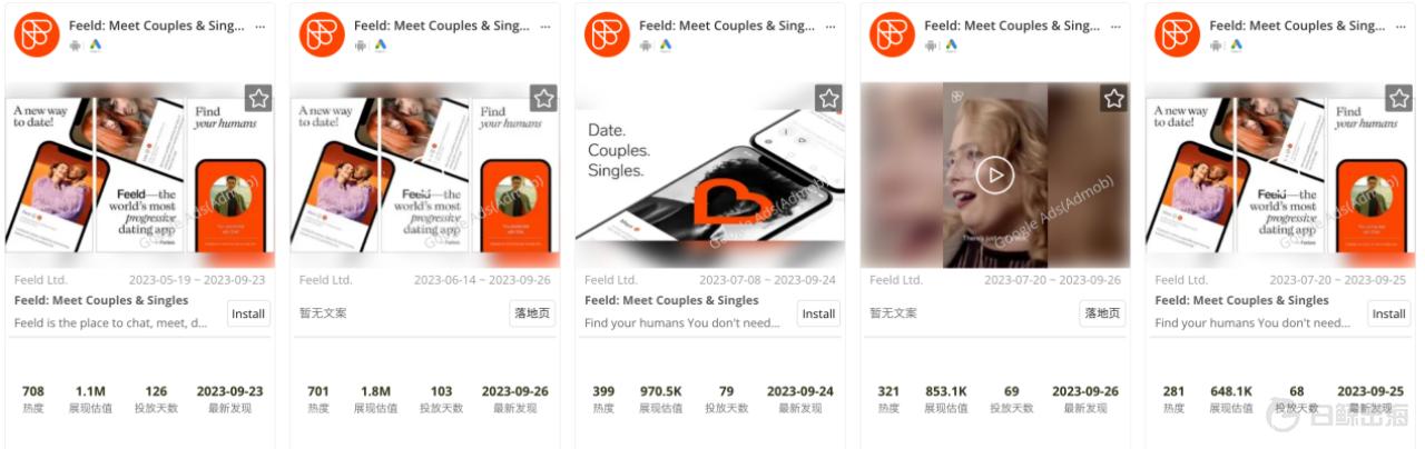 在过去两年,Feeld 一直通过广告投放获取更多用户,虽然累计投放的广告素材数量算不上很多,但多数广告素材投放时间超过 30 天。
