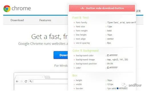 看到一个很酷的网站,作为Web开发人员,有时候经常想借鉴它们的样式,想知道它的CSS并在自己的网页中使用。这个插件可以帮助Web开发人员轻松查看网页底层CSS属性。只需要单击工具栏CSSViewer图标,然后将鼠标悬停在网页元素上,就可以看到元素相关的CSS。