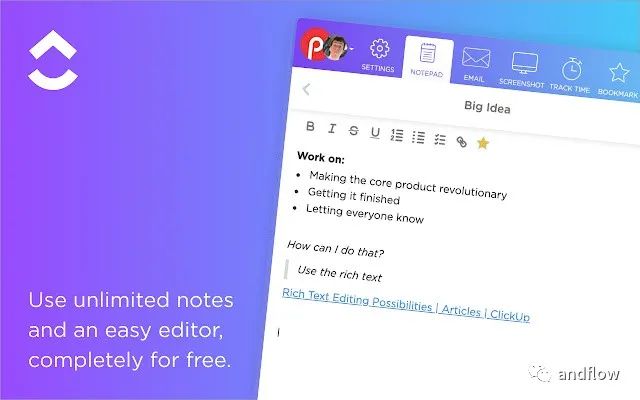 安装地址:https://chrome.google.com/webstore/detail/clickup-tasks-screenshots/pliibjocnfmkagafnbkfcimonlnlpghj