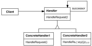 思路:使多个对象都有机会处理请求,从而避免请求的发送者和接收者之间的耦合关系。将这些对象连成一条链,并沿着这条链传递该请求,直到有一个对象处理它为止。