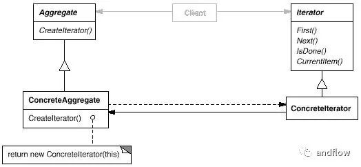 思路:提供一种方法顺序访问一个聚合对象中各个元素, 而又不需暴露该对象的内部表示。