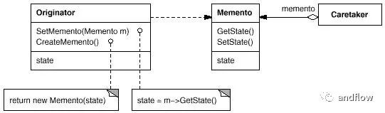 思路:在不破坏封装性的前提下,捕获一个对象的内部状态,并在该对象之外保存这个状态。这样以后就可将该对象恢复到原先保存的状态。