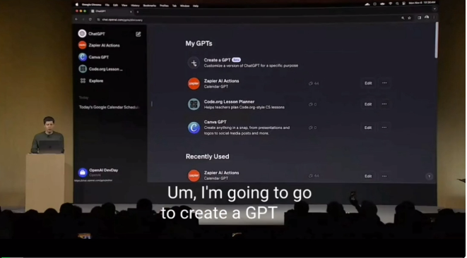 用自然语言构建自己的GPT,这一点太炸裂了。Altman在现场真实演示了构建的过程。全场响掌声雷鸣。